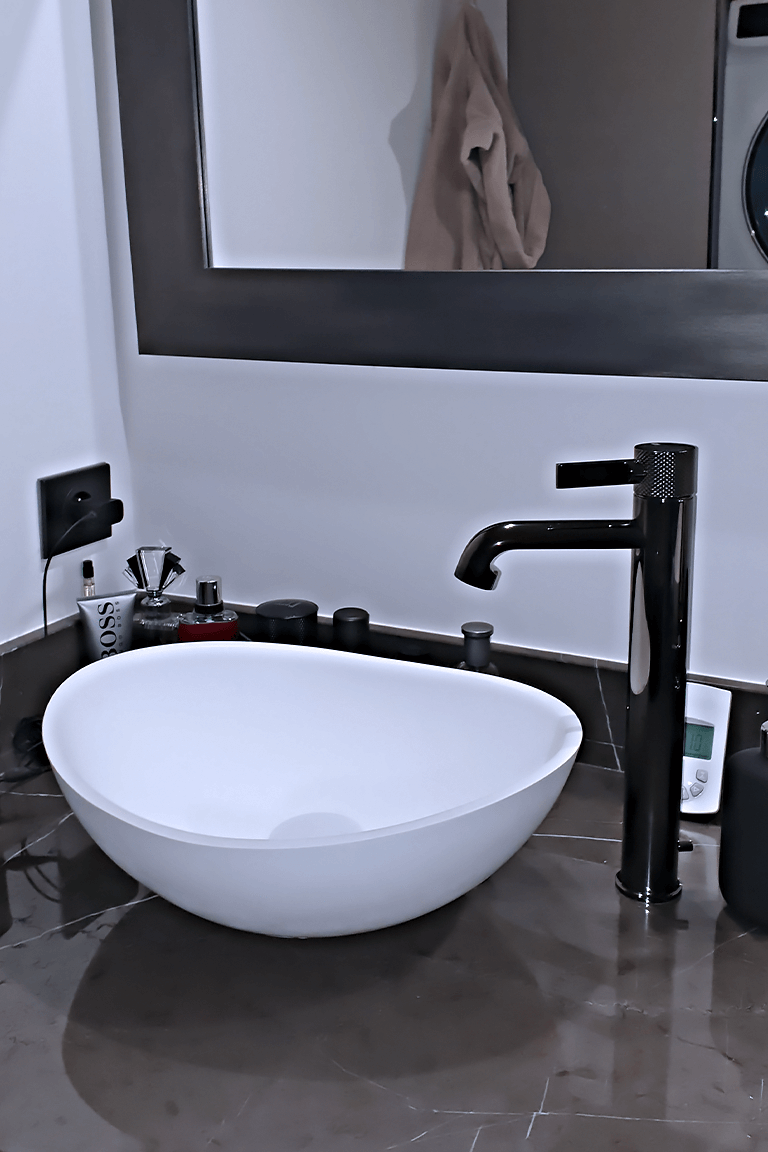 S.A.R. has renovated and fitted out an apartment in a luxury residence. A welcoming atmosphere is created by the minimalist appearance and warm colors of the decorative elements. Faucets, switches, door handles, the choice has been made for noble, modern and original ironsmith.